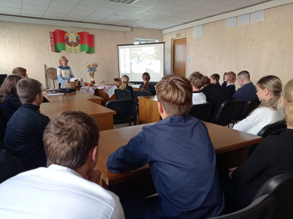 30 верасня для вучняў ДУА “Сярэдняя школа № 2 г. Касцюковічы” супрацоўнікі музея правялі занятак у форме гульні “Ад зерня да хлеба”. Падчас занятка дзеці пазнаёміліся са складанай працай хлебароба, сельскагаспадарчымі прыладамі, якімі карысталіся нашы продкі, народнымі запаведзямі ў адносінах да хлеба, а таксама з узорамі вышыўкі ўраджаю на рушніках. У гульнявой форме вучні паказалі свае веды пра хлеб: яны складалі прыказкі, адгадвалі загадкі, адказвалі на пытанні крыжаванкі, тлумачылі выразы. За актыўны ўдзел у конкурсах вучні атрымалі смачныя прызы - духмяныя абаранкі.